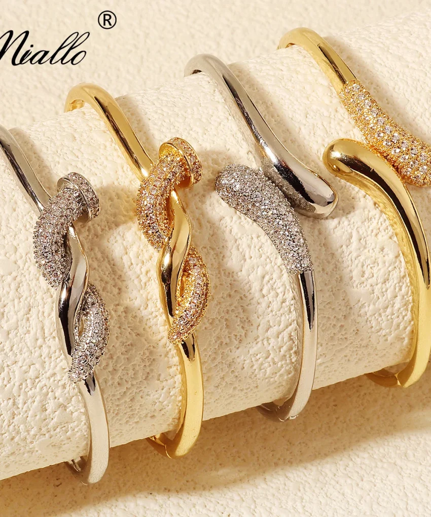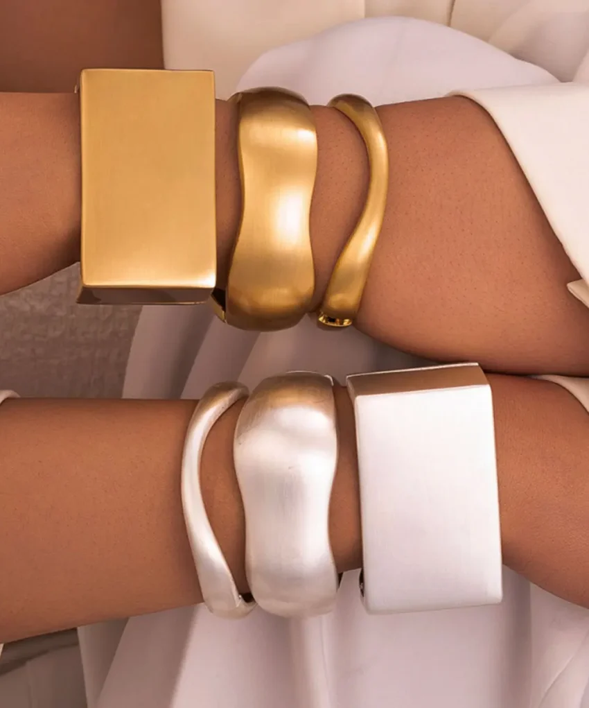 KMVEXO Chunky Heavy Wide Metal Water Drop Bangles for Women Gold Color Open Cuff Thick Irregular Wave Bangle Bracelet Jewelry