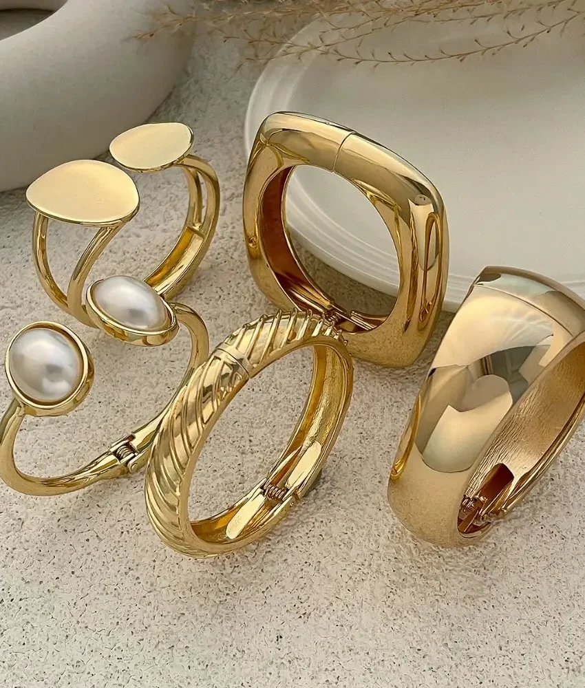 Ingemark 3 Styles Hip Hop Chunky Metal Spring Bangles for Women Men Punk Irregular Open Arm Bracelets Daily Jewelry Steampunk