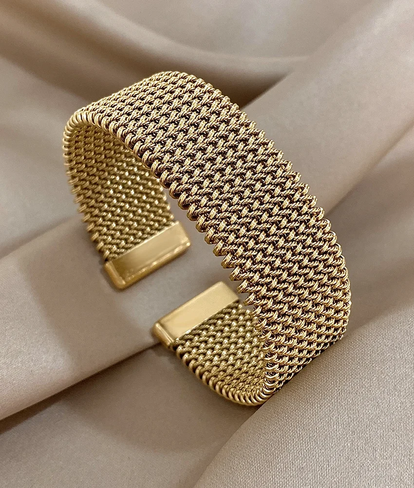 Vintage Stainless Steel Braided Mesh Open Bracelet Classic Cuff Waterproof Jewelry for Women Men Daily Party Wear Jewelry Gifts