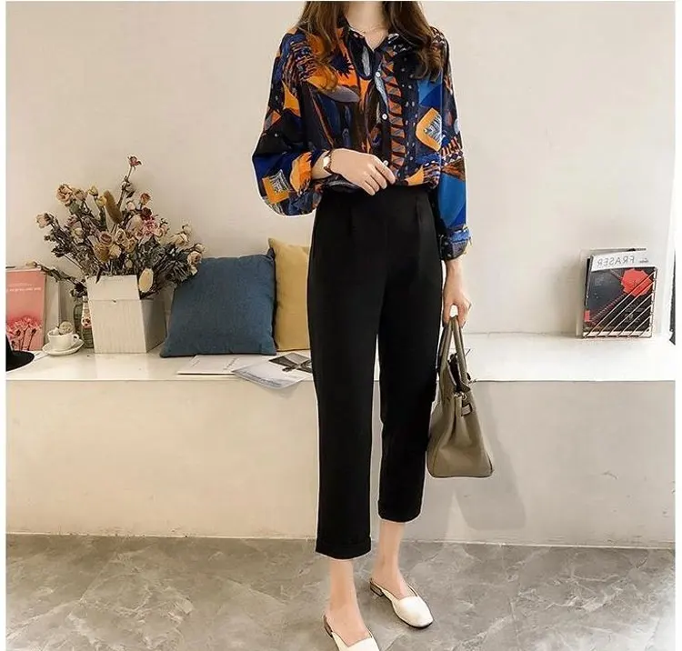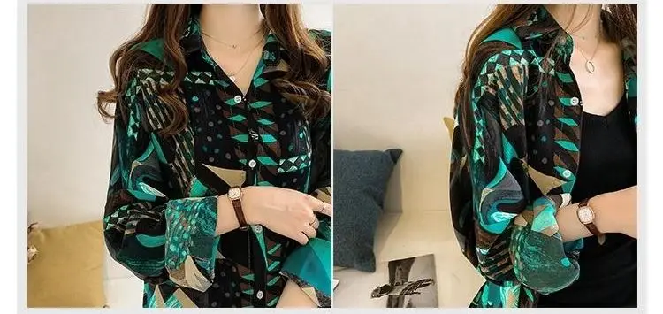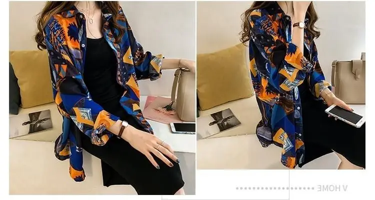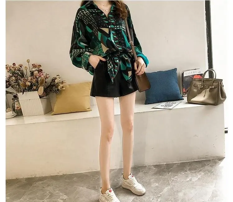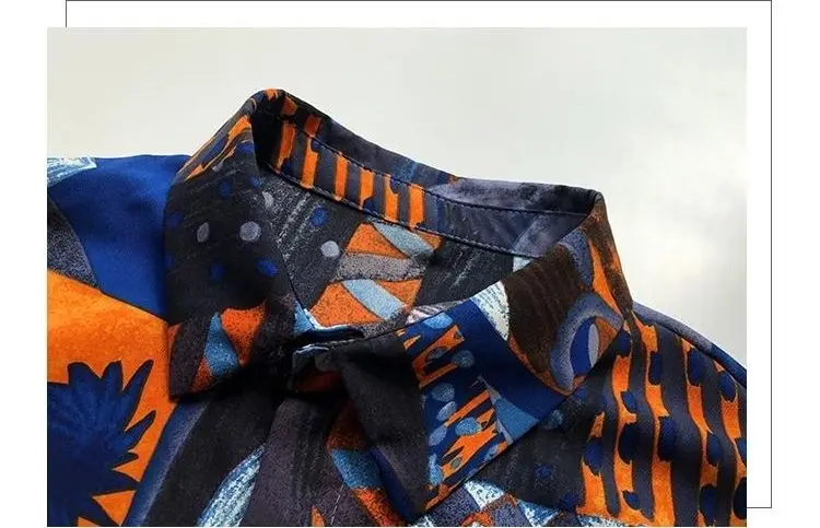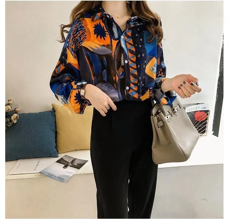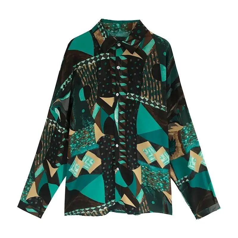 Beach Style 2024 Contrasting Colors Printed Loose Blouse Spring Summer Fashion Spliced Single-breasted Korean Polo-Neck Shirt