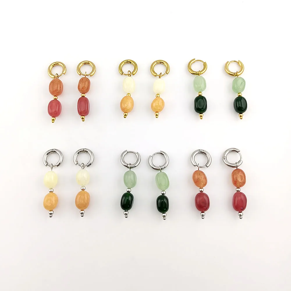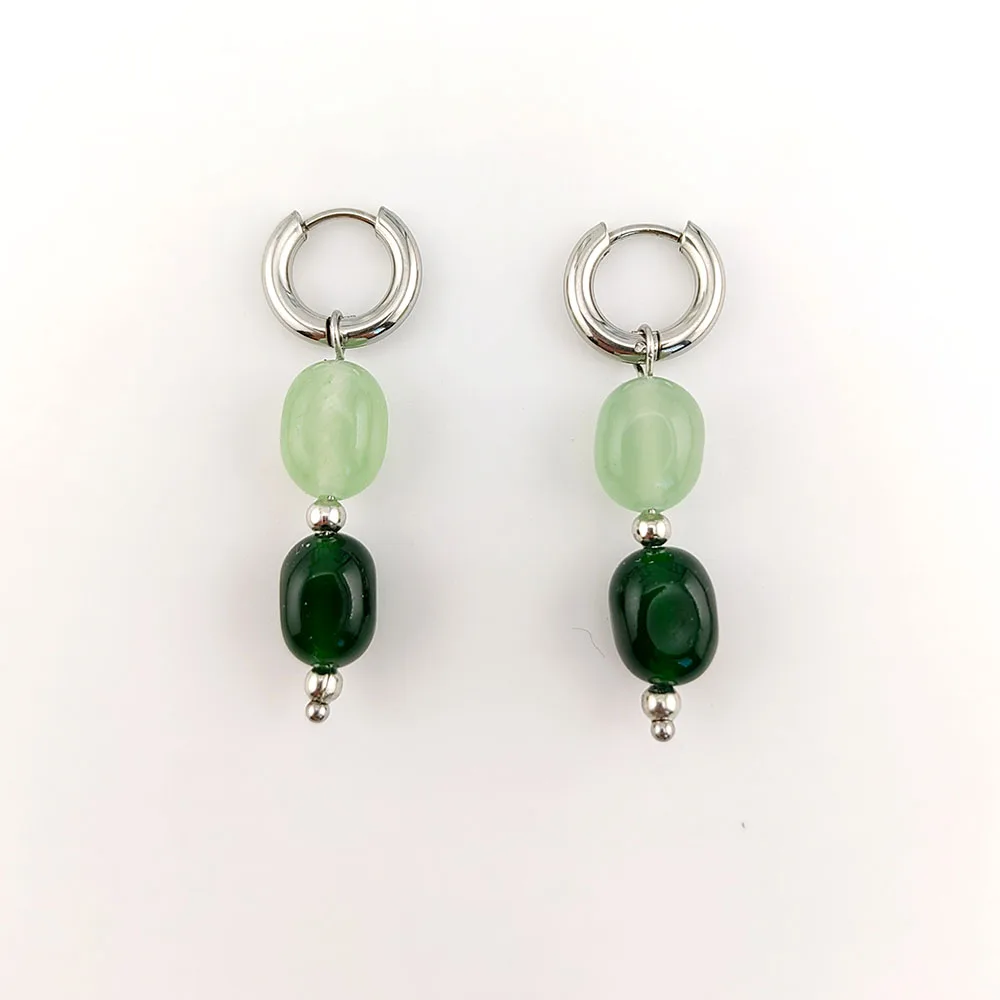HUIDANG Earrings With Stones New In Woman Green Stone Autumn Earrings Stainless Steel Hoop Boucles d’oreilles