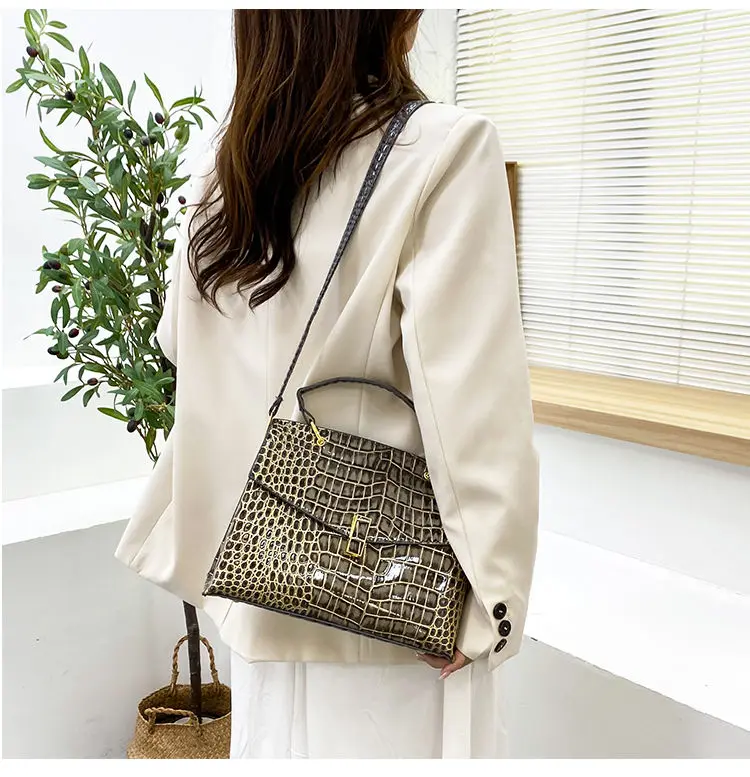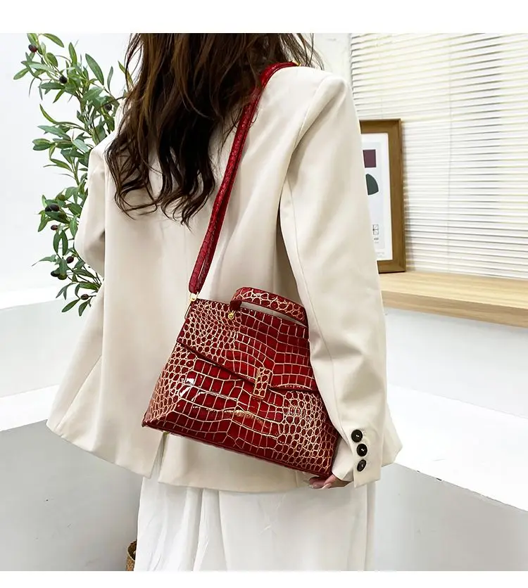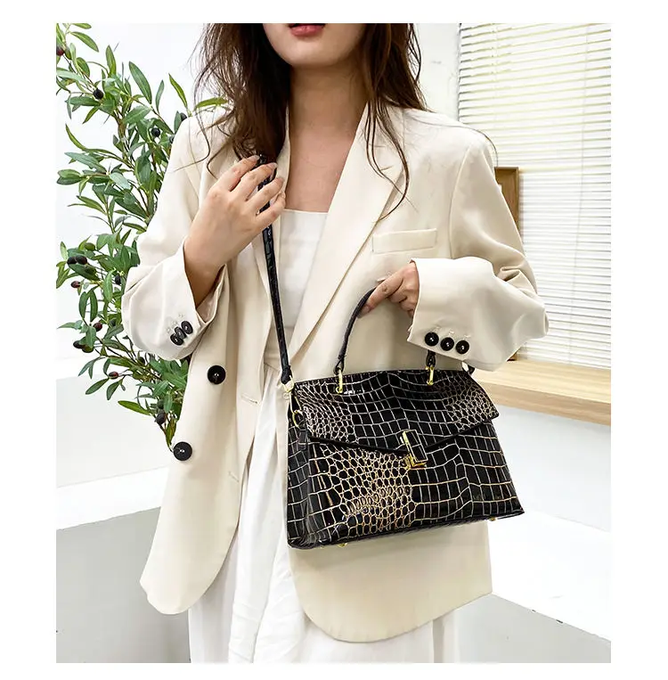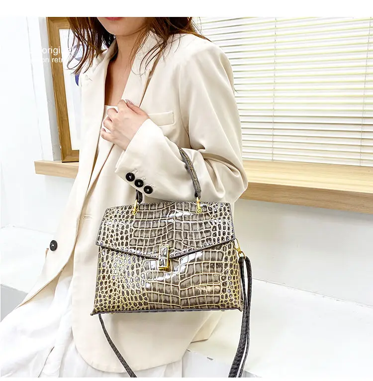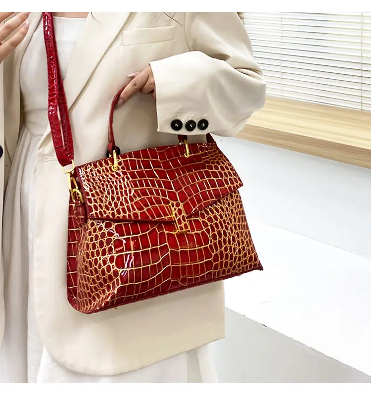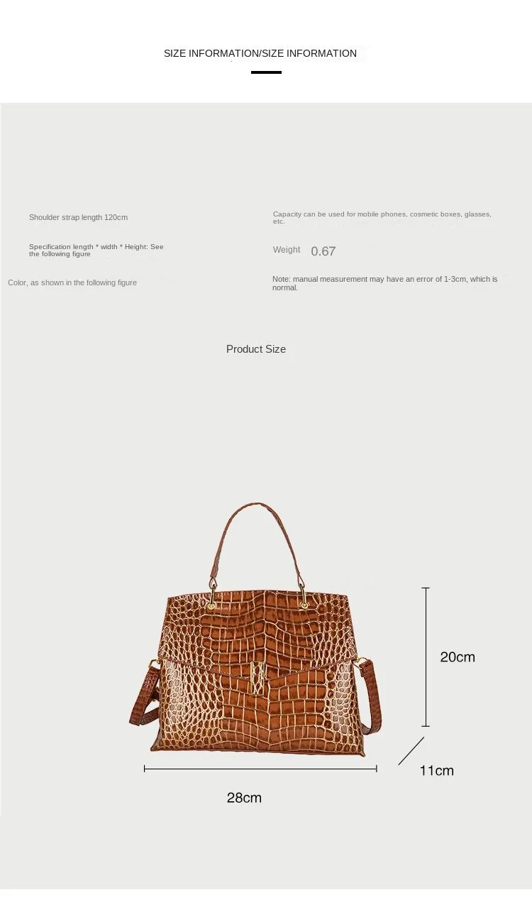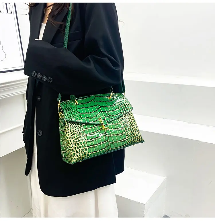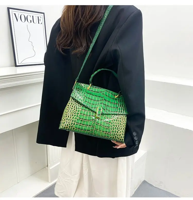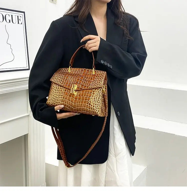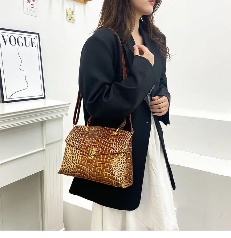 Luxury Fashion Genuine Leather Women’s Handbags Design 2024 New Crocodile Pattern Shoulder Messenger Bag Portable Shell Bags