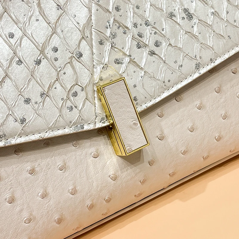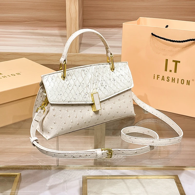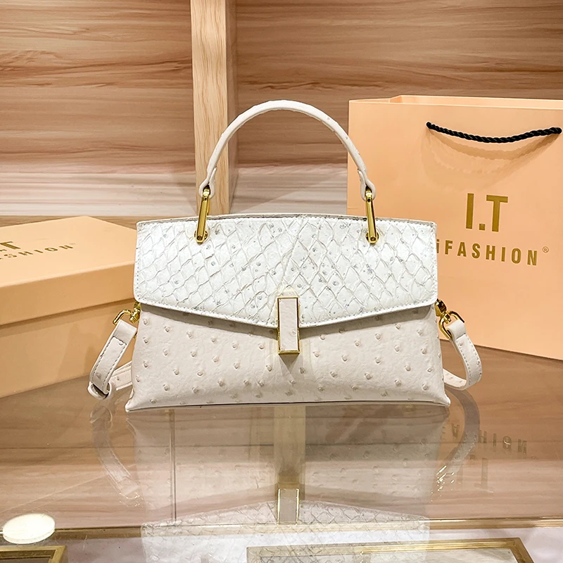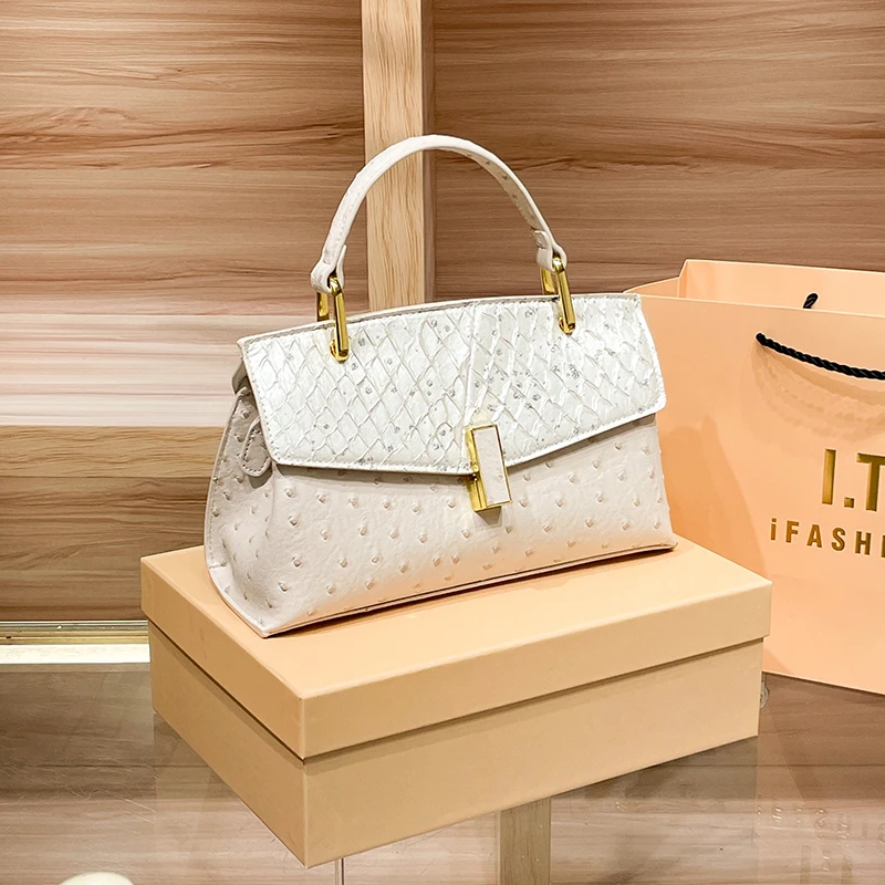 Genuine Leather Ostrich-print Women Handbags 2024 New Shell Bag European And American Fashion Luxury Shoulder Crossbody Bags