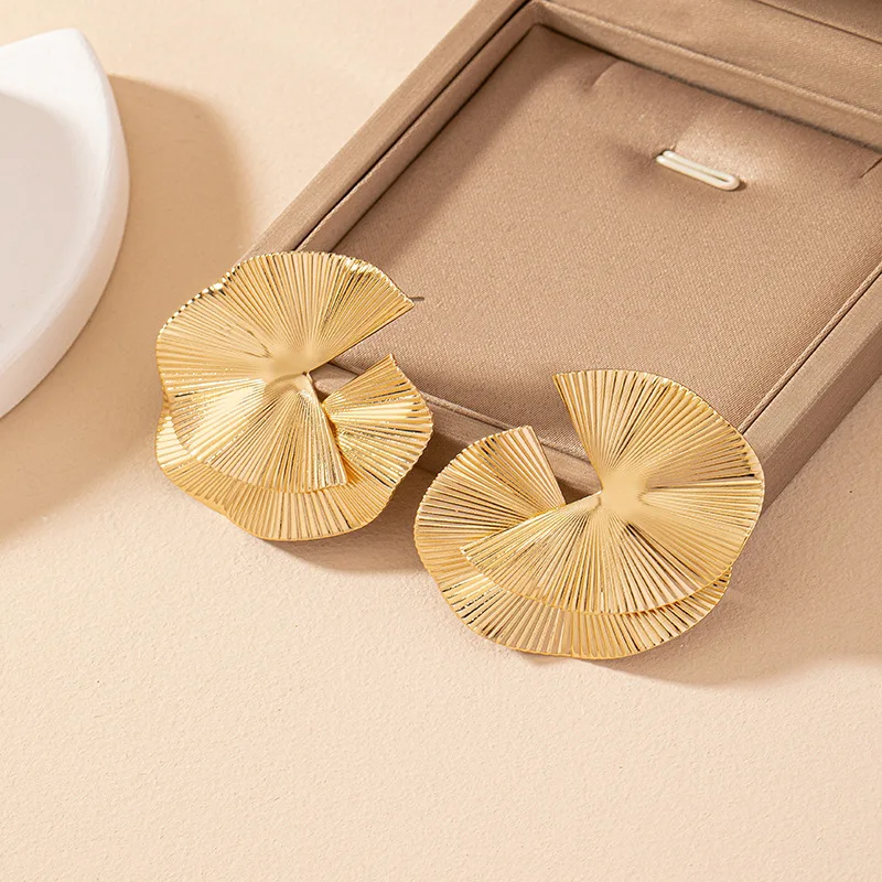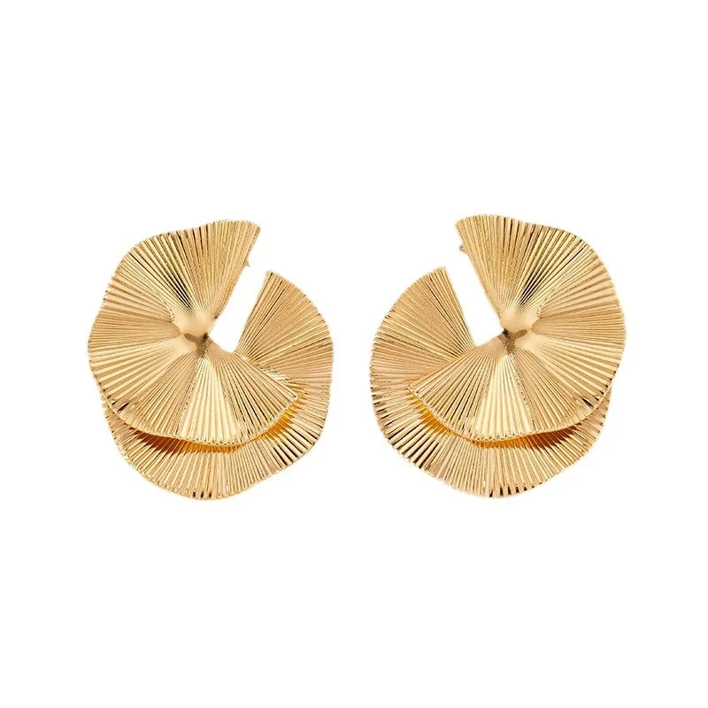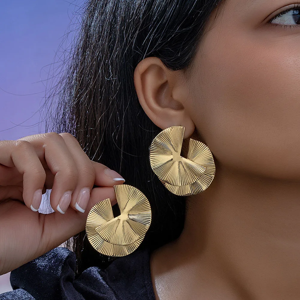 YCQZ Creative Stainless Steel Metal Flower Big Stud Earrings 2024 Fashion Attractive Statement Jewelry Women Personality Gift