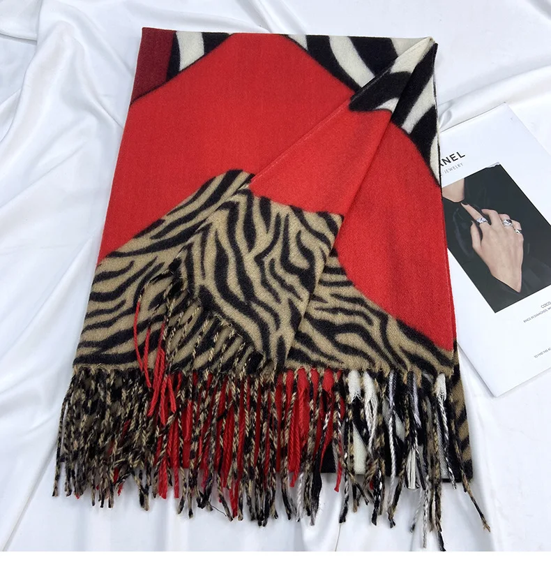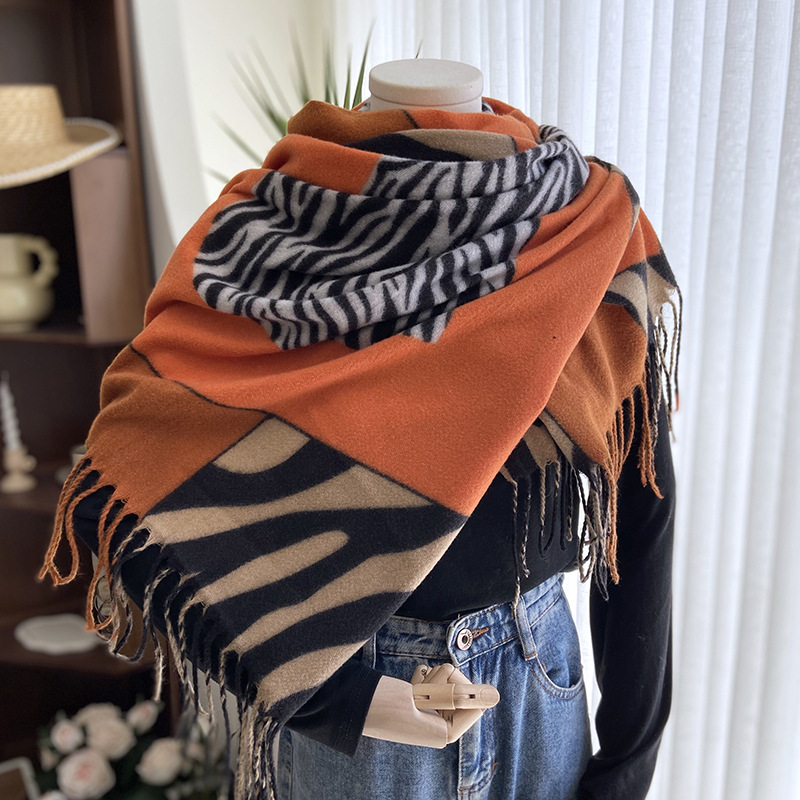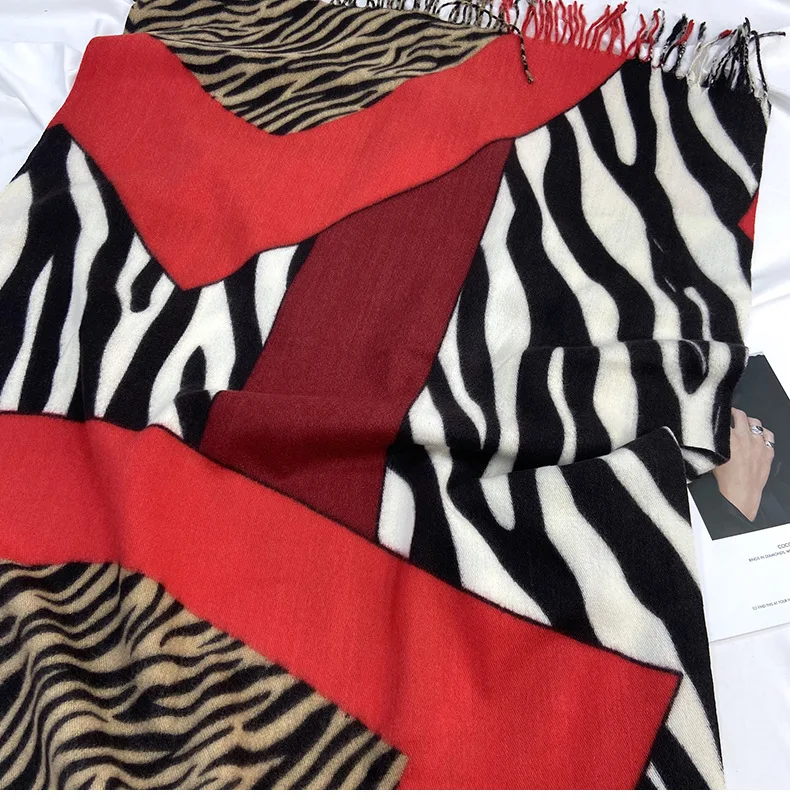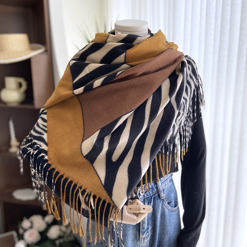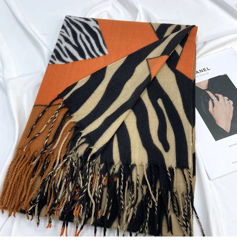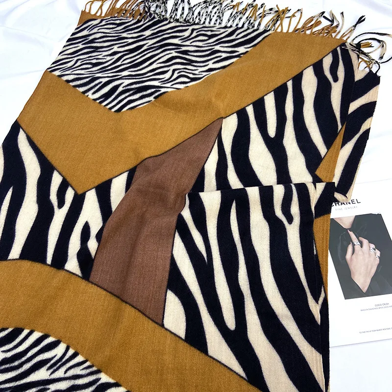 Winter Cashmere Scarf Women Designer Zebra Striped Pashmina Shawl