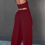 Spaghetti Strap Long Pants Casual Comfortable Knitted Stretchy Set